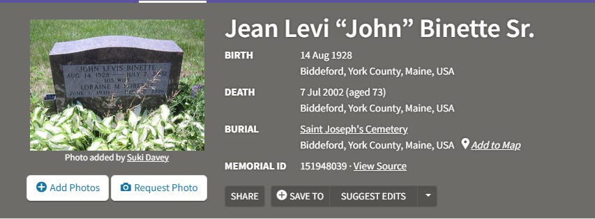 And sure enough, there was a John Binette that lived in Biddeford, Maine.